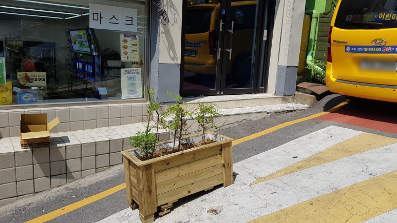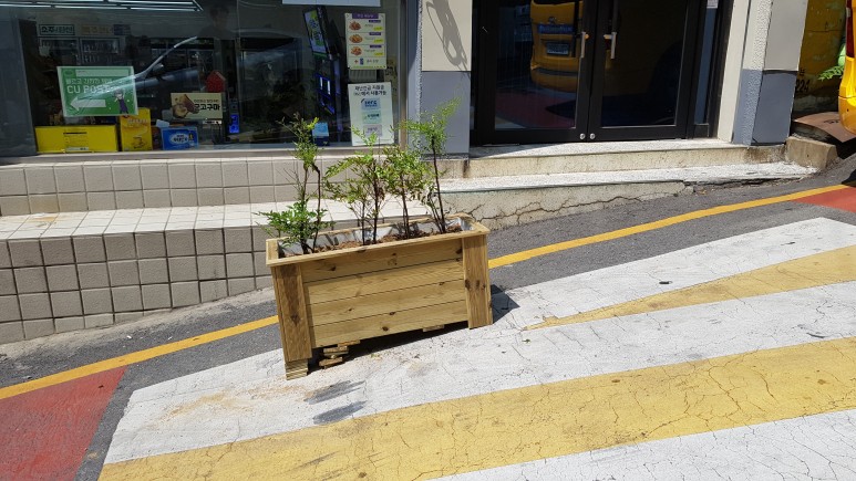빌라 입구 및 주차장 입구에 불법 주차로 인한 불편을 해소하고자 주차 방지용 화분 설치 / 주차 금지 오뚜기 납품, 주차방지용 화분에는 남천나무를 심어달라고 요청하셨습니다.