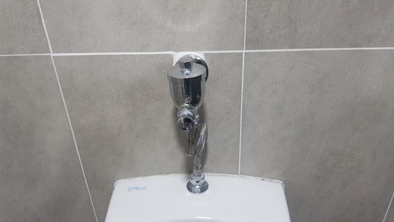 소변기 수도를 잠가서 물이 나오지 않게 해야 작업이 가능하기에 화장실 수도 밸브를 잠가 줍니다. 그리고 기존에 설치되어 있던 세척 밸브를 철거해 줍니다. 철거 후 배관에 이물질 등을 제거해 주고 소변기 세척 밸브에 테프론 테이프를 감아서 다시 재설치 해 줍니다. 소변기 세척 밸브 구매 시 들어있는 소변기로 가는 호수 배관은 규격이 있는데요. 사용하기에 불편하기에 소변기 고압호스를 구매 후 설치해 줍니다. 소변기 세척 밸브가 설치가 완료되면 어디에 물이 새는 데가 없는지 확인 후 소변기 세척 밸브 수압 조절하면 작업이 완료됩니다.