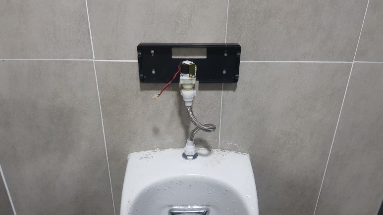 소변기 세척 밸브가 설치되어 있는 현장입니다. 소변기 세척 밸브는 자동이 아니라 수동으로 물을 내리기 때문에 가끔 볼일을 보시고 물을 안 내리고 가기도 하기 때문에 소변기에서 냄새가 날 수 있습니다. 소변기 센서로 교체로 볼 일 후 자동으로 물을 내려 소변기 세척에 큰 도움을 줍니다. 소변기 센서는 보통 건전지형과 전기식 방식으로 나누어지는데 이 현장은 건전지형으로 설치하였습니다. 건전지형은 간단한 설치로 배터리만 교체하는 방식으로 사용이 가능합니다. 전기식은 소변기 설치 전 전기 배선 작업을 해야 사용이 가능합니다.
