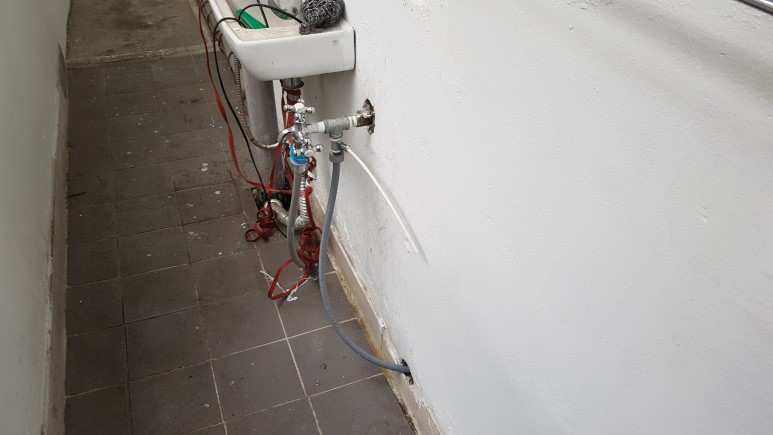 수전이 외부에 있어서 수도배관을 연결해서 작업을 진행했습니다.