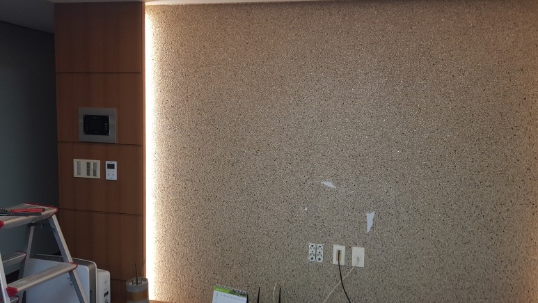 우물천장의 경우는 고정나사 없이 작업이 가능하며, TV 아트월 자리의 경우 벽체에 고정 클립 연결 후 LED T5 간접 조명을 설치해 주시면 됩니다.