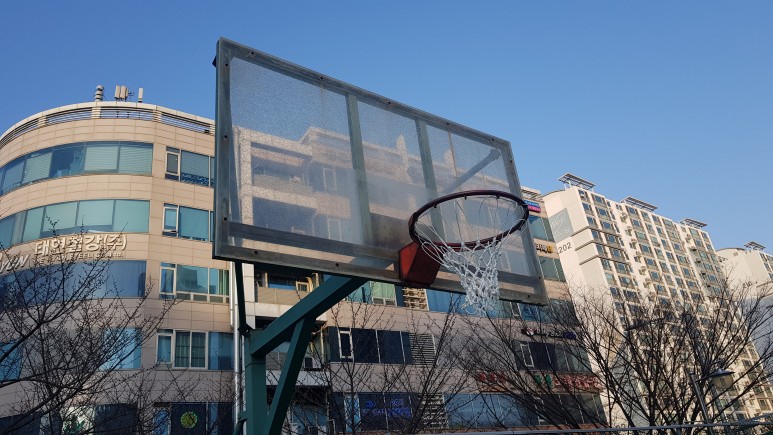 재질은 농구전용 투명 아크릴이며 규격은 가로 1.8m * 높이 1.5m 두께 15mm 이며 이 제품은 농구 경기에서도 사용하는 정식 규격입니다. 그 외 백보드는 목재나 투명한 판이어야 하고 표면은 평평하게 해야 합니다. 바스켓은 오렌지색으로 칠한 내경 45cm의 철제 링에 백색의 망을 설치합니다. 링의 굵기는 지름 2cm이어야 하며 망은 길이 40cm로서 볼이 바스켓을 통과할 때 일시 머물도록 해 줍니다.