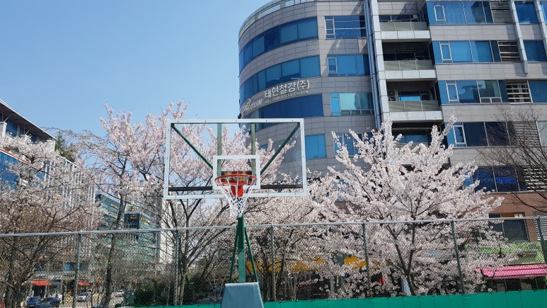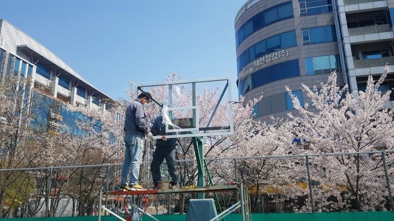 그 후 농구 링을 백보드 작업과 똑같이 기존 프레임에 맞게 타공 및 고정작업을 해 줍니다.