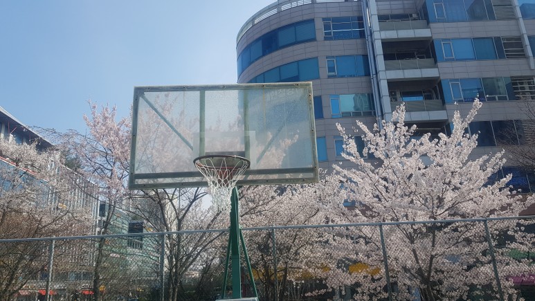 농구 링을 고정이 되었다면 농구 골 망을 고리에 껴서 설치해 주고 보호비닐 등을 제거해 주면 작업이 완료됩니다.