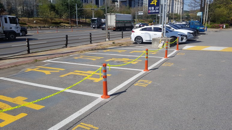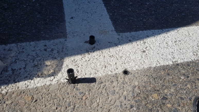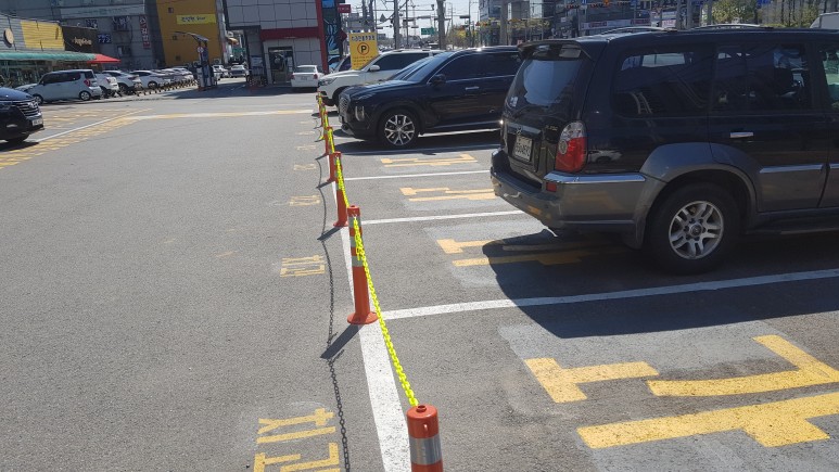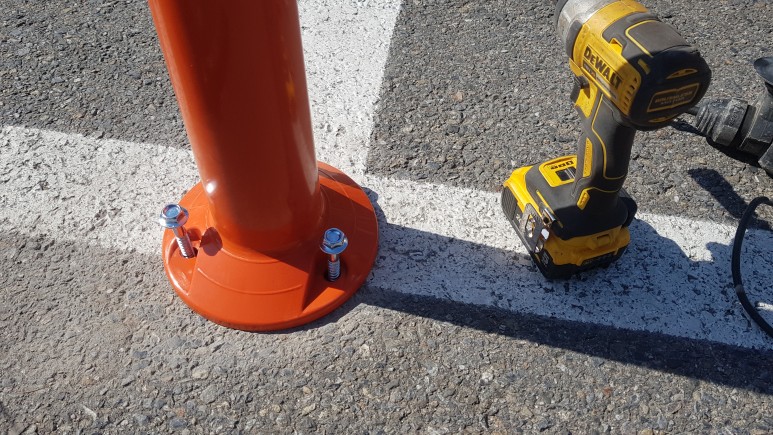 작업 방법: 우선 차선규제봉을 설치하기 위해서는 설치하는 위치에 마킹 작업 후 콘크리트 드릴(14mm)척으로 9cm볼트 길이에 맞게 타공 작업을 실시합니다. 아스콘용 칼블럭을 삽입 후 고정시켜 줍니다. 볼트 3개를 차례로 고정시켜 주면 작업이 완료됩니다. 차선규제봉 설치 후 고리에 비너와 플라스틱 체인을 이용하여 연결해 주면 작업이 마무리됩니다.