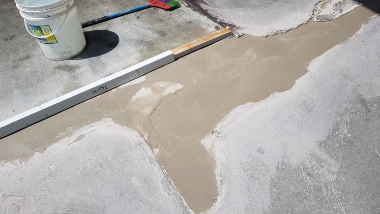 미장 작업 후 레벨이 맞지 않는 면은 연삭기를 이용해서 레벨을 잡아주고 액상하드너를 이용해서 콘크리트 강도를 좀 더 강하게 해 주었습니다.
