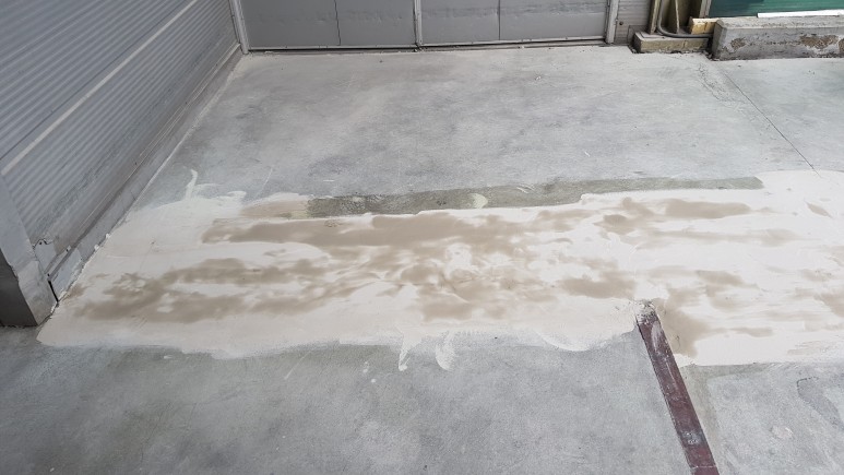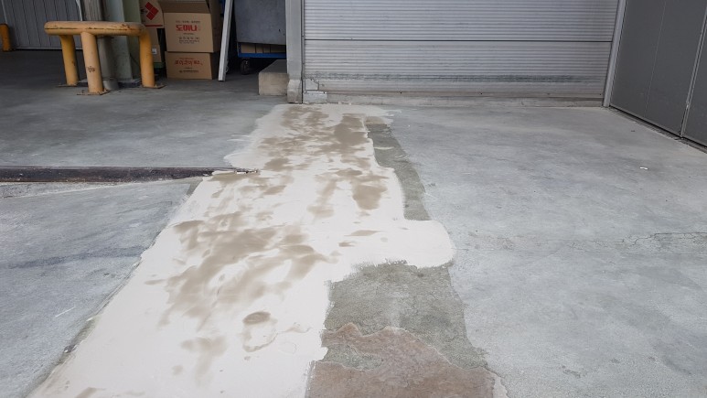 제품 설명: 자동수평몰탈(마페이 노보플랜 DA40(10-40mm) 두께를 자동으로 수평을 잡아주는 몰탈 입니다. , 프라이머(콘크리트와 몰탈면의 접착제로 수용성 하도 프라이머)콘크리트 절단석, 함마 드릴, 연삭기, 붓, 롤러, 트레이, 액상하드너(무기질계 침투식 콘크리트 바닥 표면 강화제)를 사용하였습니다.
