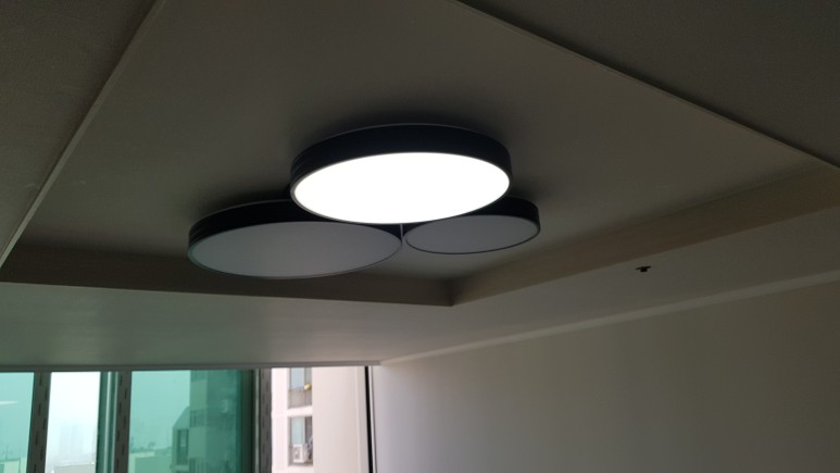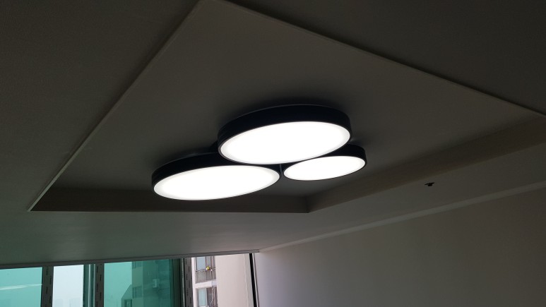 작업 방법: 우선 천장에 상을 찾습니다. 상에 조명 브라켓 설치 > 조명 거치 후 배선 연결 작업을 진행합니다. 배선 연결 후 커버를 닫아 줍니다. 거실등은 우물천장 센터를 맞춰서 마킹 후 브라켓 설치 조명 거치 후 배선 연결 작업 및 커버를 닫아주면 됩니다. 식탁등은 브라켓 설치 조명 거치 및 높 낮이 조절 후 고정시켜 주면 작업이 완료됩니다.
