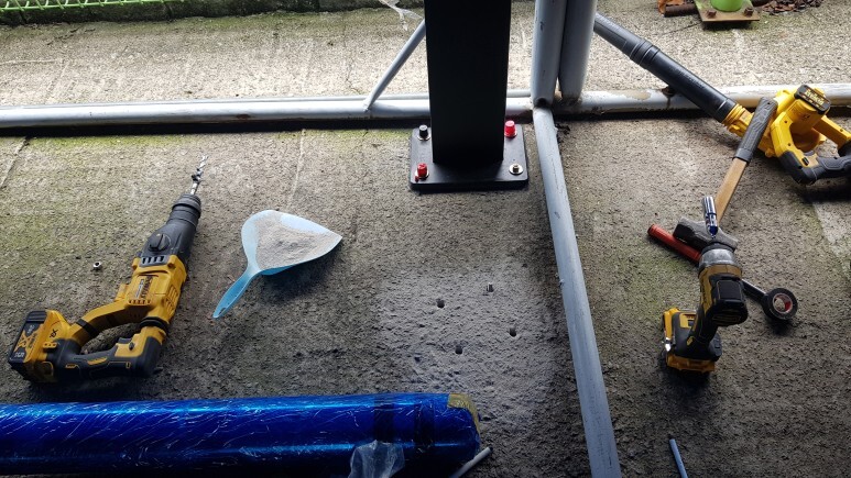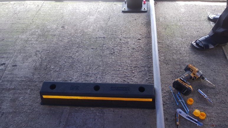 작업 방법: 설치 위치 협의 후 타공 위치 마킹 작업 타공 실시 스토퍼는 콘크리트용 이지 앙카로 10mm드릴 로 타공을 하며 타공을 진행한 후 이지앙카를 해머로 고정작업 후 스토퍼를 고정시켜 주고 볼트를 체결해서 단단하게 고정하면 작업이 완료됩니다.