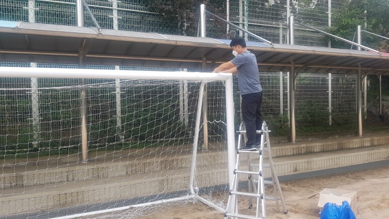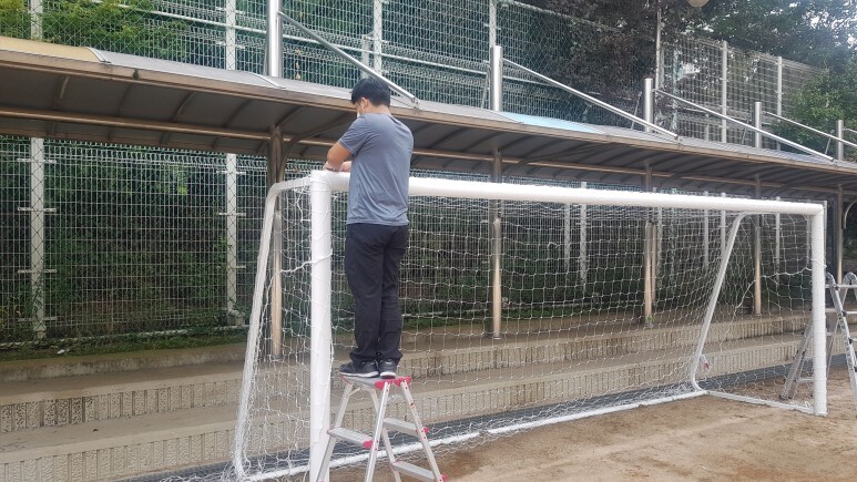 2. 도색작업 후 축구 골대 네트 설치