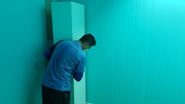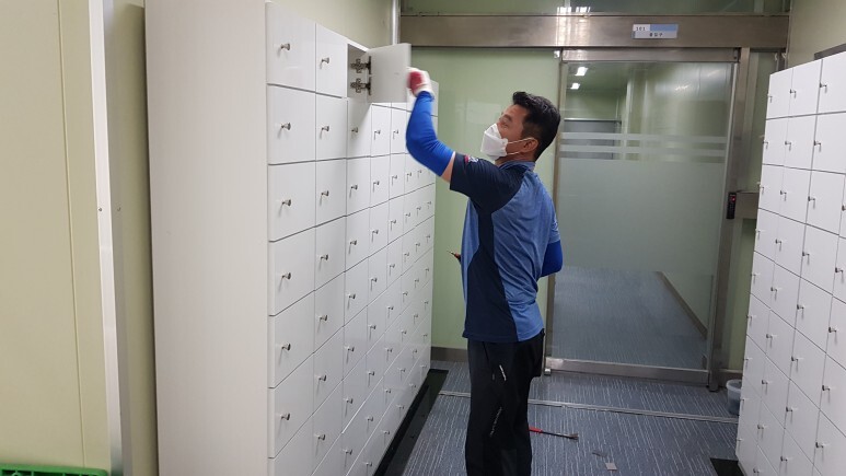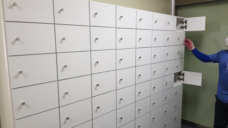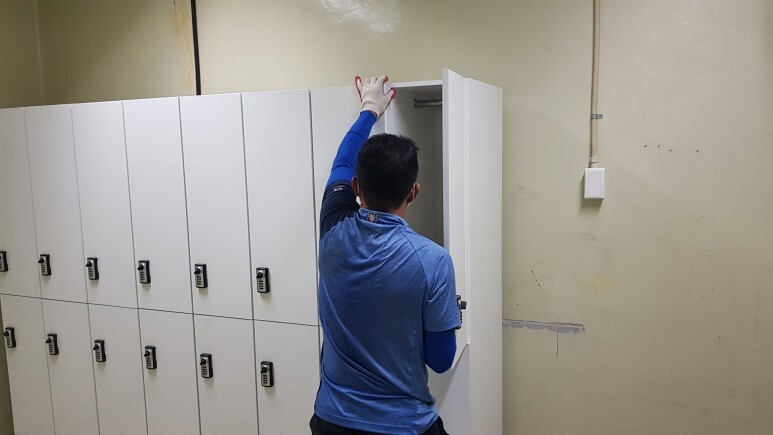 작업 방법: 설치 장소 확인 후 제작된 락카룸 운반 및 설치 후 단차 및 높낮이 확인 후 볼트로 고정 후 걸레받이로 마무리하면 작업이 완료됩니다.