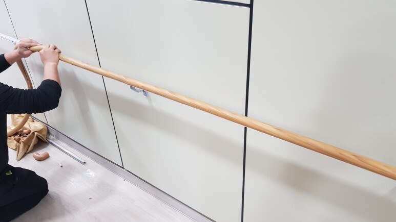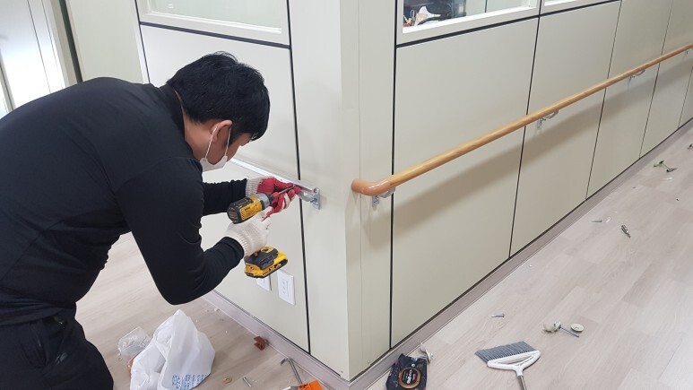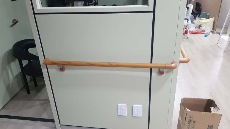 1. 벽부형 핸드레일 설치(SGP칸막이로 되어있어서 볼트로 고정 작업하였습니다)