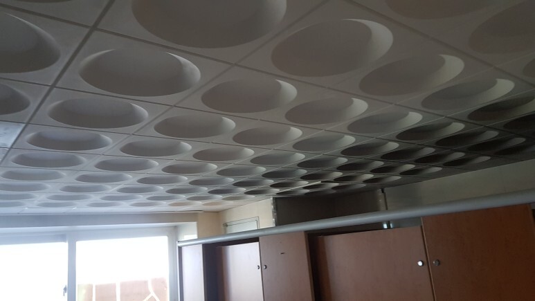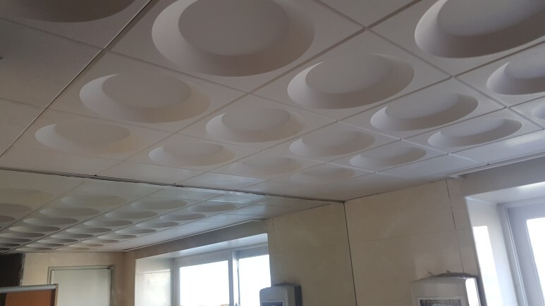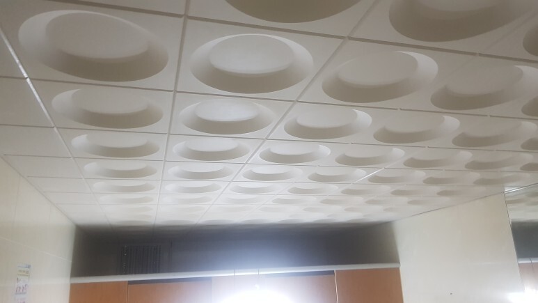 제품 설명: SMC 원형 천장재 사이즈는 300*600각입니다. 타일 몰딩, 케링, 와이어클립, 마이너 클립, 행거, 클립바, 마이너찬넬 행거볼트등을 이용해 작업하였습니다.