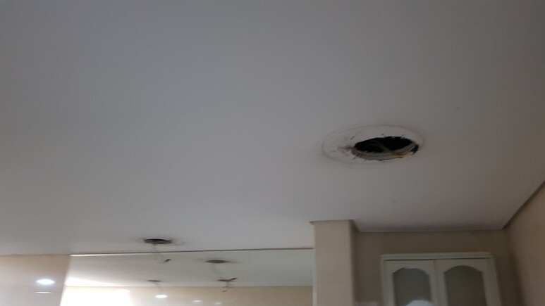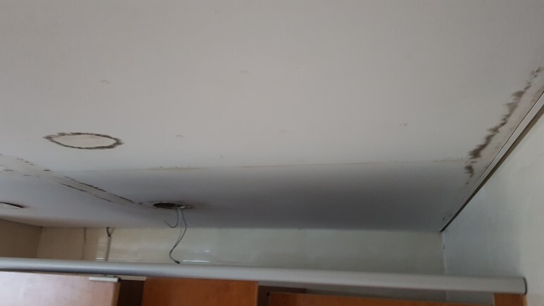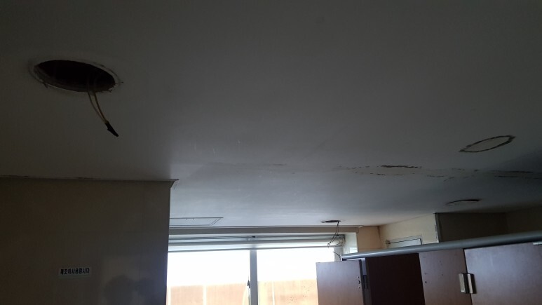 기존 천장재는 석고보드로 시공이 되어있었으며 곰팡이 및 변색 상태여서