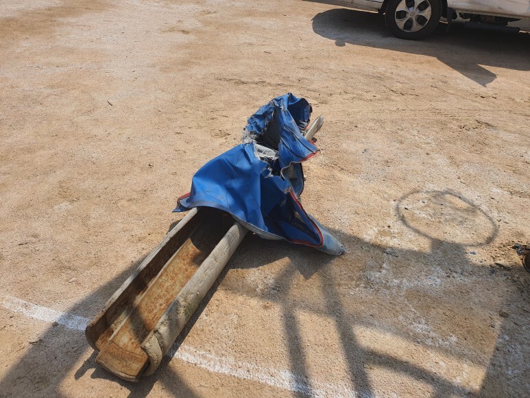 제품 설명: 높이 2m, 기둥 사이즈 220파이 색상은 청색에 타포린재질로 만들었습니다.