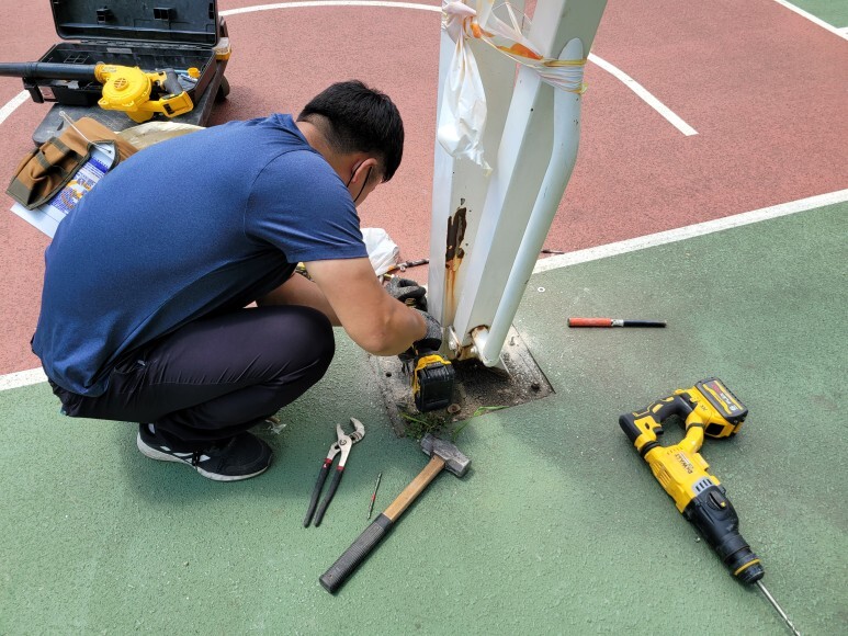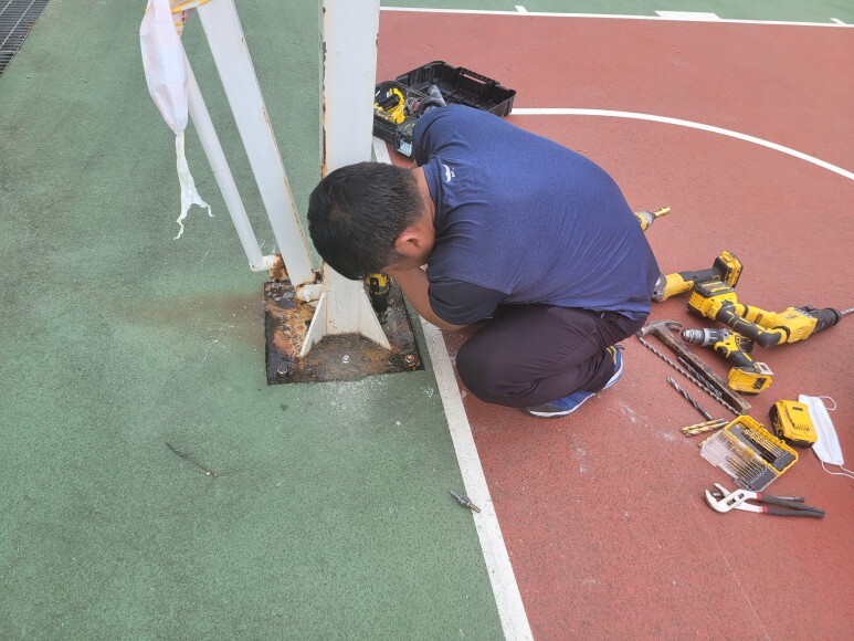 농구 골대 하부 기초가 깨지지 않아서 단단하게 고정작업을 진행하였습니다.