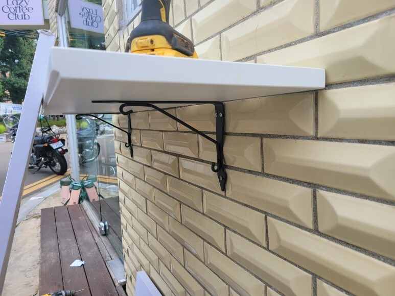 최대한 벽 선반과 메지 부분에 맞게 브래킷 설치 후 벽선반(크록스훌트)를 브래킷에 고정하면 작업이 완료됩니다.