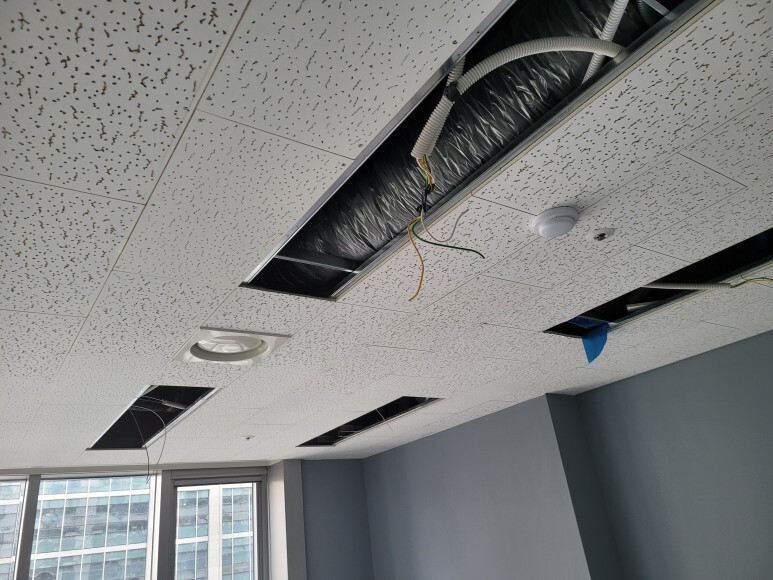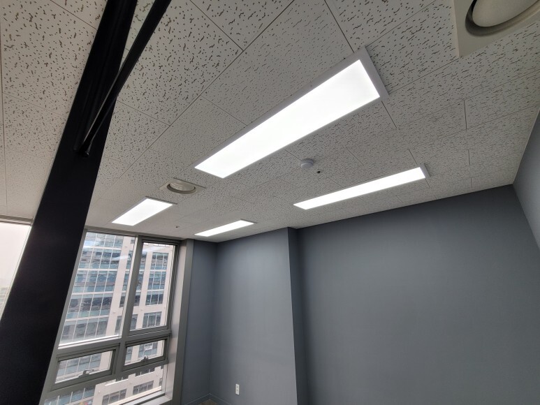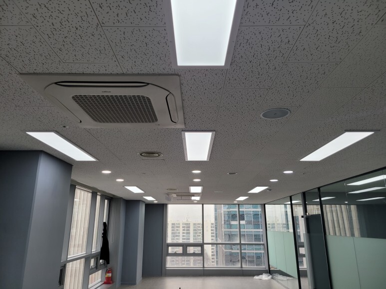 부평구에 위치한 지식산업센터 사무실 업무공간인데 아침인데 불구하고 사무실이 어둠컴컴하시다고 조명 교체를 의뢰하셨습니다. 기존은 형광등 타입의 등을 사용하셔서 생각보다 어둡다는 느낌이 들어서 LED평판등으로 교체 작업을 진행하였습니다. 사무실 업무공간 조명 밝기는 1000~ 2000 lux 정도로 설정하시면 됩니다.
