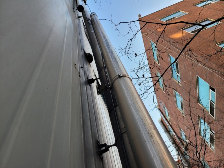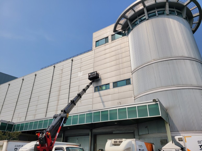 제품 설명: 고소작업차 3.5ton을 이용하여 외부 판넬 들뜸 현상을 보수 작업을 진행하였습니다. 방수 피스를 이용하여 누수에 신경 써서 작업을 진행하였습니다. 외부 창문 이중 유리 교체 작업, 외부 구조용 파이프 탈락이 되어서 고정 작업을 진행하였습니다.