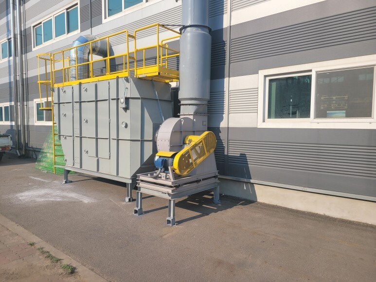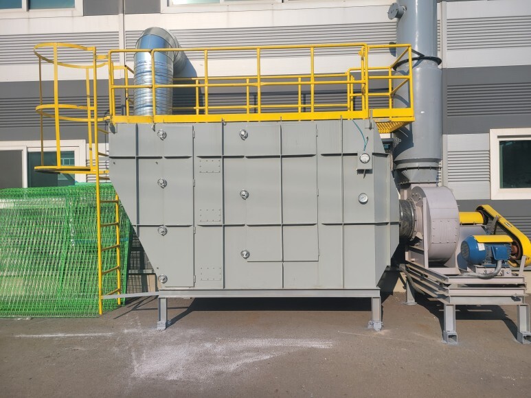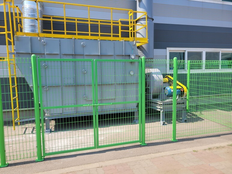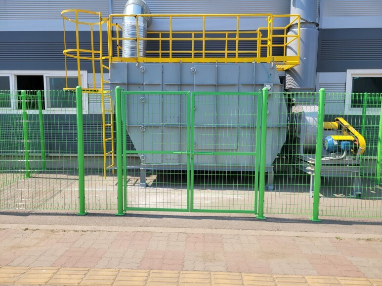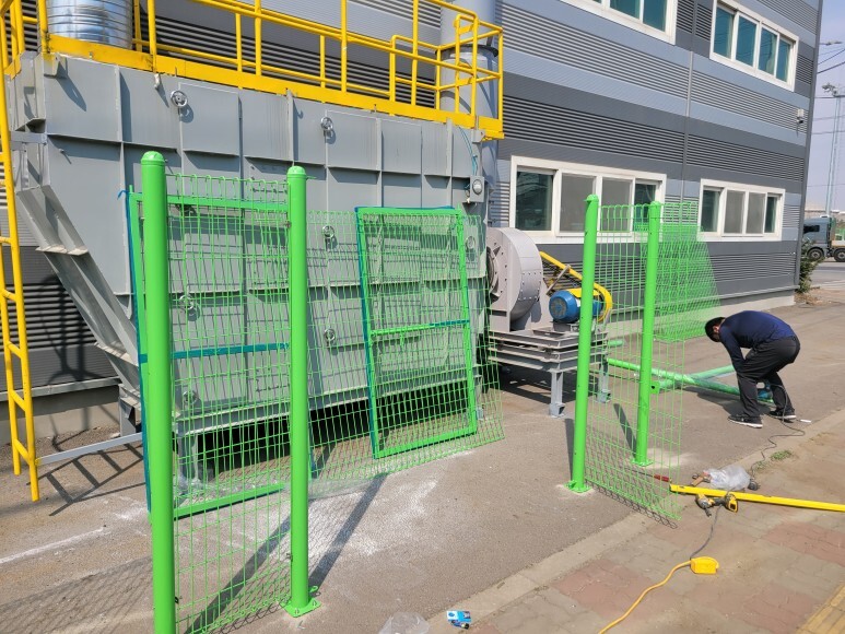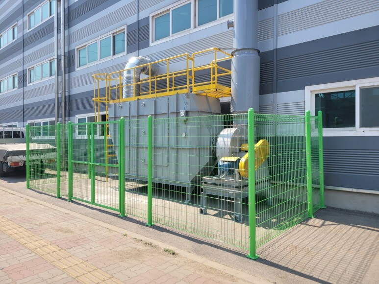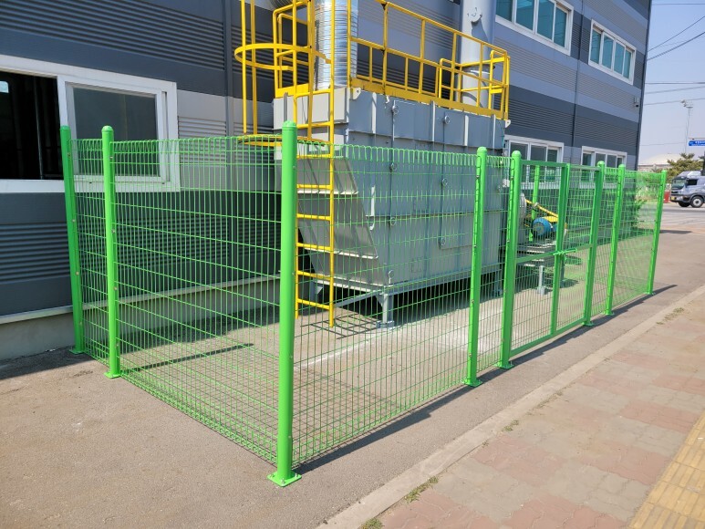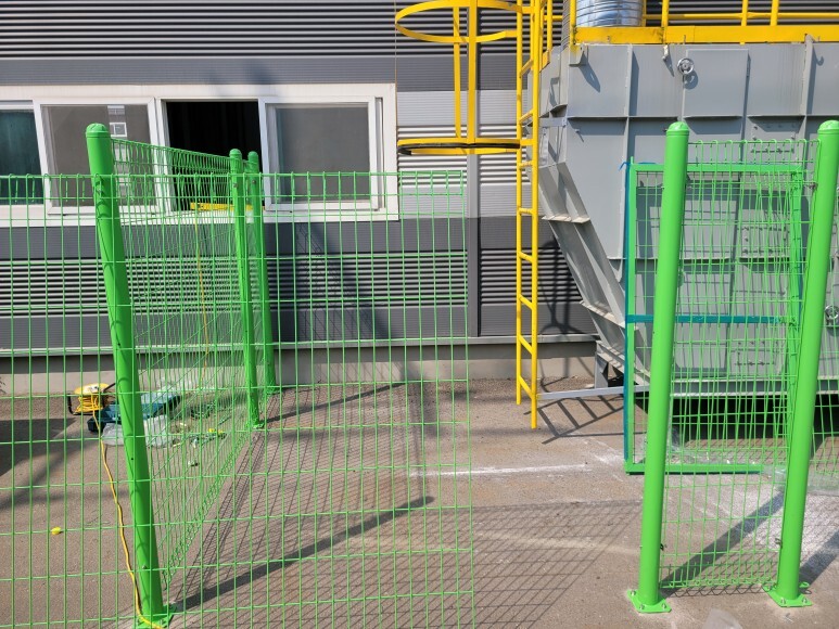 메쉬휀스, 메쉬양문을 이용하여 출입 금지 안전 구역을 설치하였습니다. 도로변에 집진기 등이 설치되어 있는데 모터도 돌아가고 집진기 필터 등을 열어야 하기 때문에 관리자 외 출입을 금지할 수 있는 안전 구역을 설치 공사를 진행하였습니다.