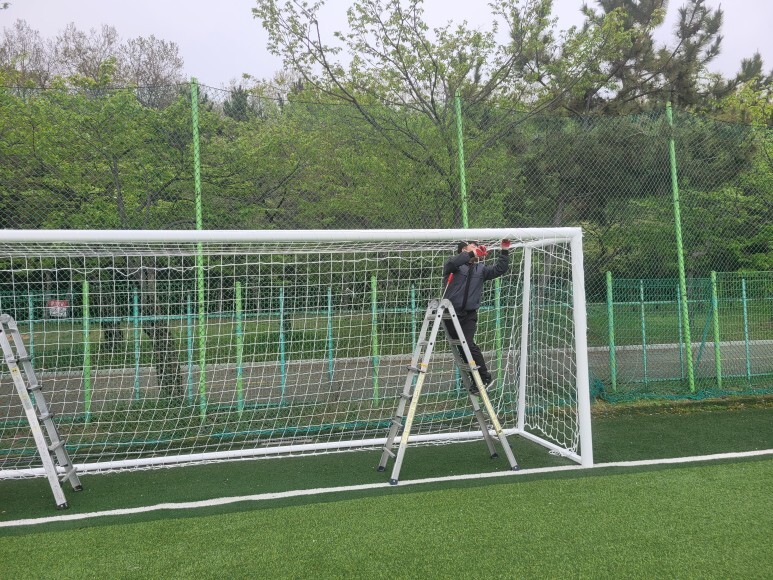 축구골대 페인트 도색 및 축구 네트 교체 작업 후기였습니다.