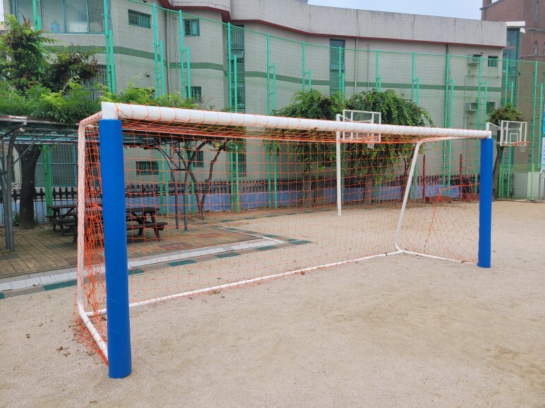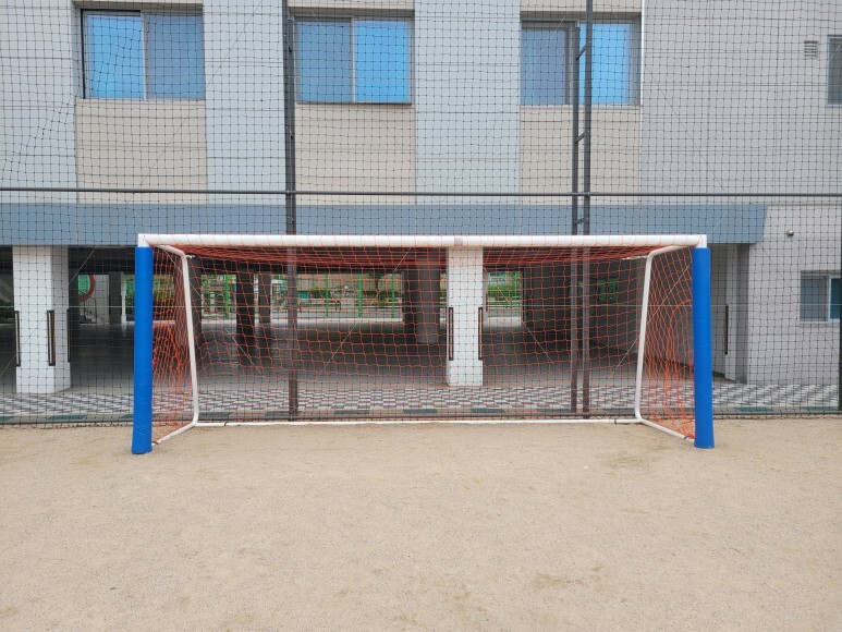 오렌지 색상 축구골망 설치가 완료되었습니다.