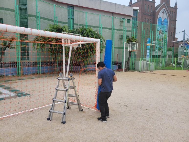 양천구 은정초등학교 축구골대 넘어짐 예방을 위한 안전한 작업 방법