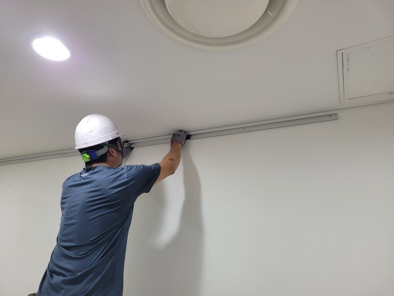 높 낮이 수평을 확인하고 타공 및 고정 작업을 진행 합니다.