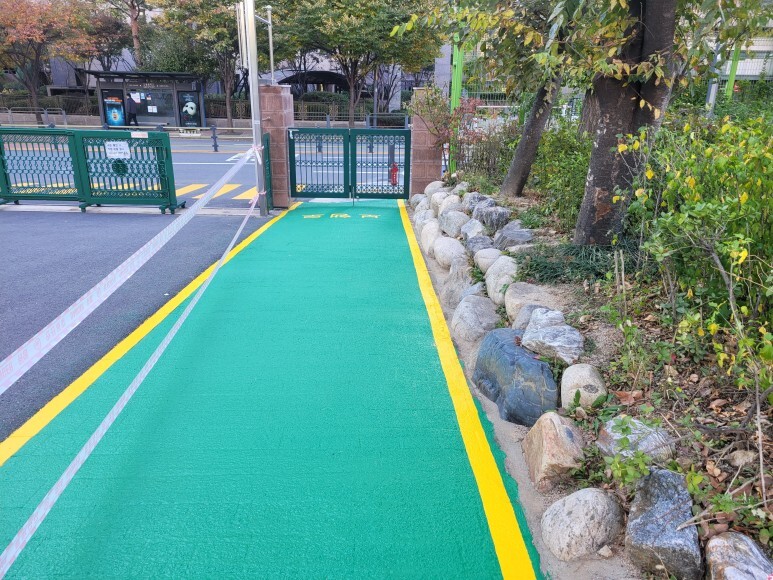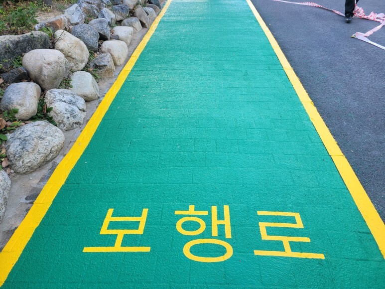 2. 보행로 글자 마킹, 보행 라인 시공(노란색)