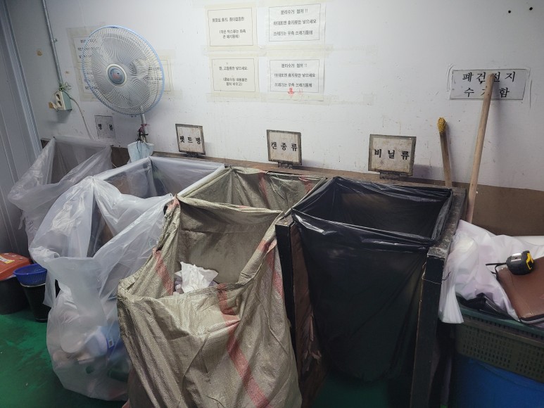 분리수거장을 리모델링하는 것은 지속가능하고 환경 친화적인 변화를 촉진할 수 있는 좋은 아이디어 입니다. 분리수거장 리모델링은 환경 보호와 지속가능한 삶에 대한 의식을 높이고 폐기물 처리 체계를 개선하는데 도움이 됩니다. 기존 분리수거장에서 배출되는 모든 쓰레기를 분리수거하는 작업 공간이 노출돼 있어 미관을 저해하고, 안전사고의 위험까지 내포하고 있던 환경을 개선하기 위해 작업을 진행하였습니다. 바닥, 천장 도색 작업 및 분리수거대 제작 설치로 보다 쾌적한 분리수거장 및 공간 활용을 위해 진행하였습니다.