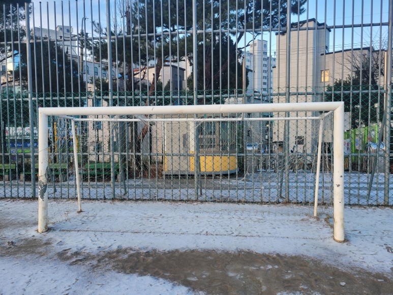 축구골대 페인트 도색 및 보수 작업이 완료되었습니다.