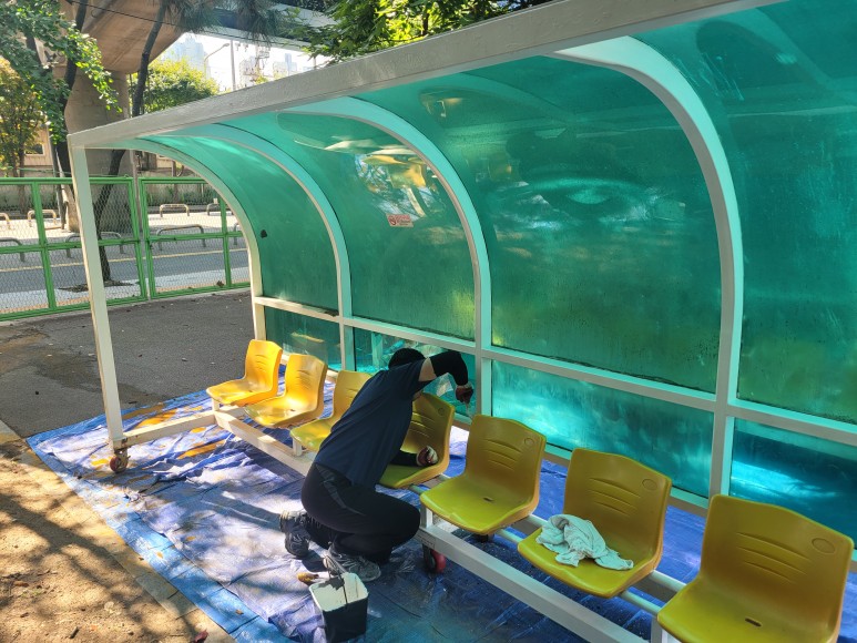 선수대기석 렉산 및 페인트 도색 보수 작업을 완료했습니다.