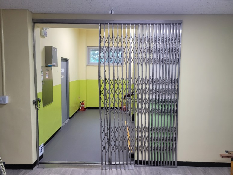 자바라 방범창은 주로 건물의 창문이나 문에 설치되어 있는 보안용 구조물입니다. 이러한 방범창은 주로 금속으로 만들어져 있어서 외부로부터 침입이나 침입자로부터의 보호를 목적으로 설치됩니다. 자바라 방범창을 이용하여 건물의 보안범위를 최소화 할 수 있으며, 자바라를 이용하여 편하게 이용이 가능합니다. 오랜 세월이 흘러서 자바라 부분 파손 및 마모로 인해 교체 작업을 진행하였습니다.
