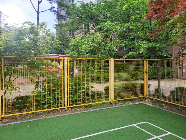작업 방법: 기존에 파손된 메쉬휀스 망을 철거하고 새롭게 준비한 메쉬휀스 망을 사이즈에 맞게 재단 및 프레임 사이즈에 맞게 용접 작업을 진행합니다. 용접 후 도색 작업을 진행하고 기둥에 고정 작업을 진행하였습니다.