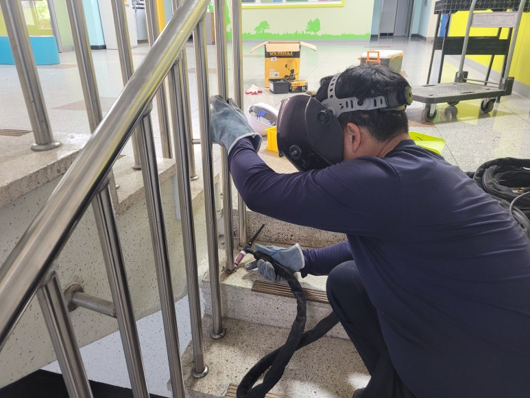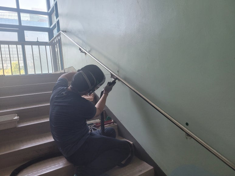 1. 스텐 핸드레일 용접 부위 보수