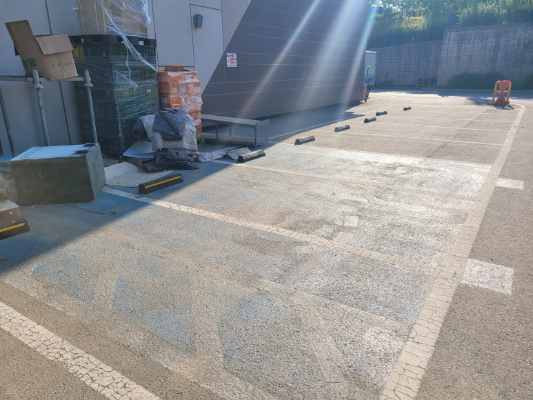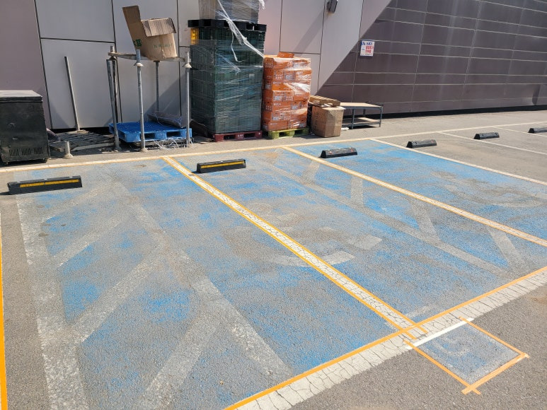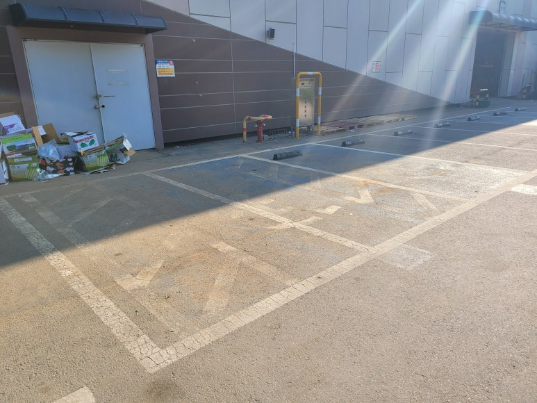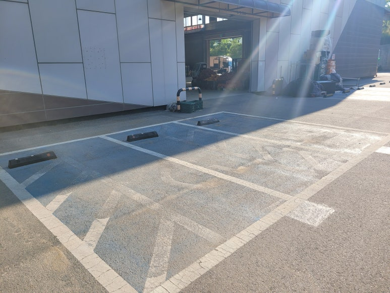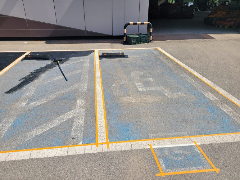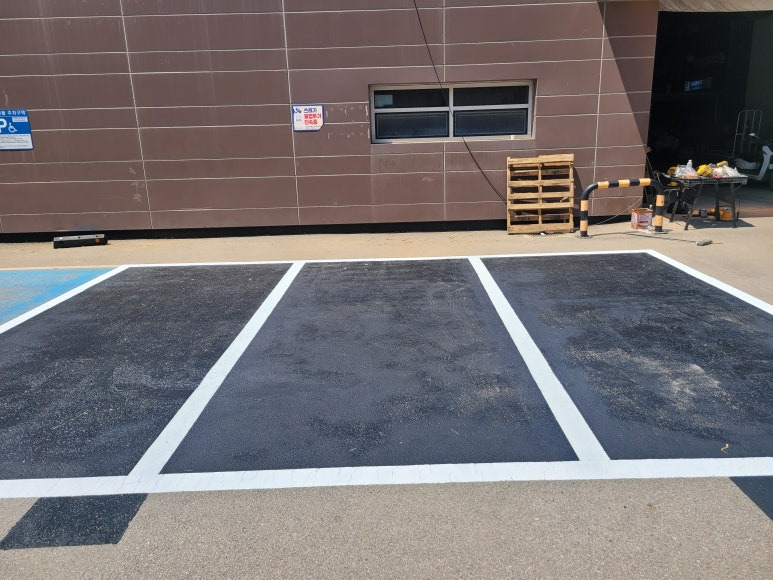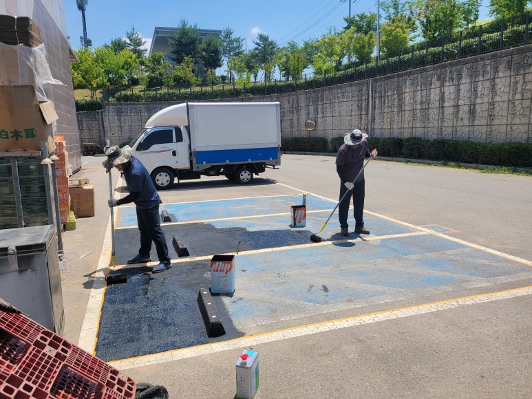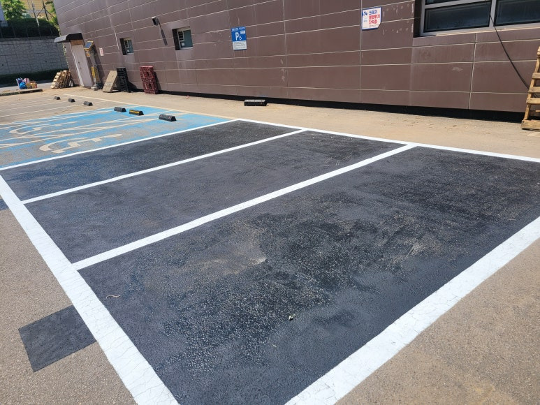 주차라인을 흰색 도로표지용 페인트로 재도색 합니다.