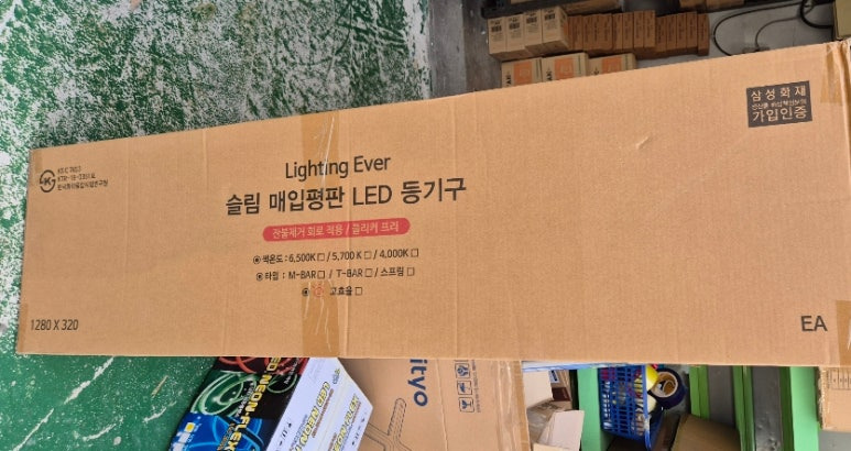 제품 설명: 국산 LED 슬림 평판M바용 제품입니다. 사이즈는 1285 * 320 제품이며 플리커프리가 들어간 조명입니다. 플리커 프리란 조명의 미세한 떨림 현상이 없어 눈이 편안합니다. 색상은 주광색이며 50W 제품입니다. 피스로 천장에 고정 체결하는 방식입니다.