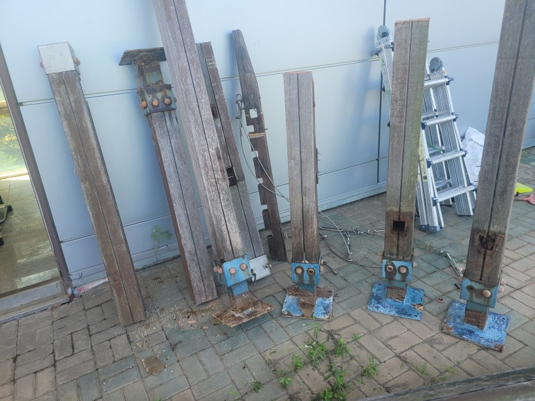 파고라의 상부 구조부터 철거합니다.