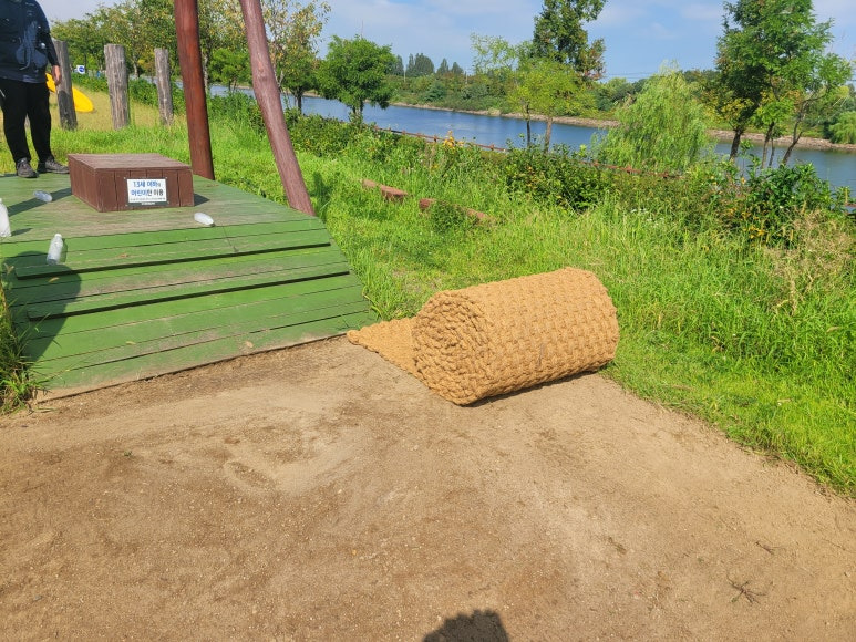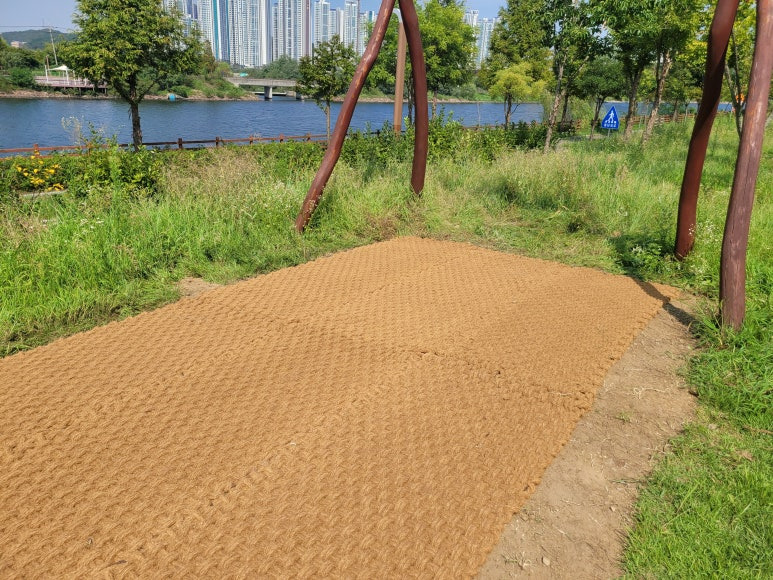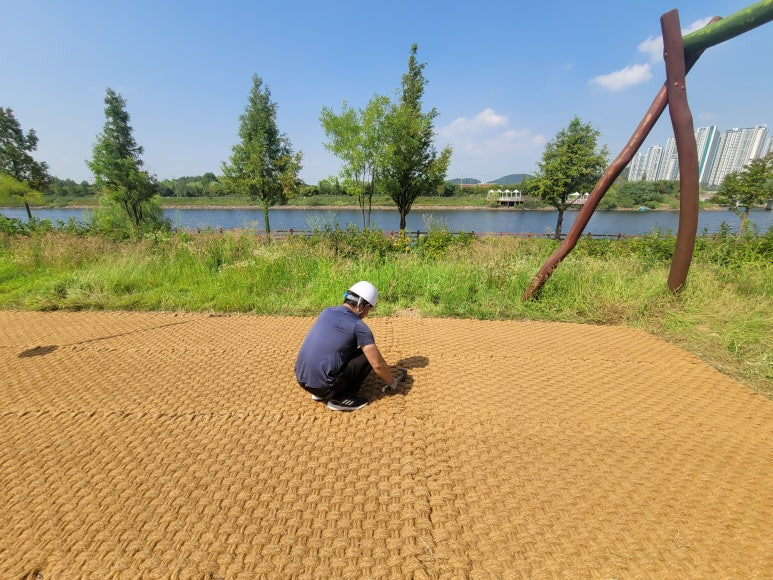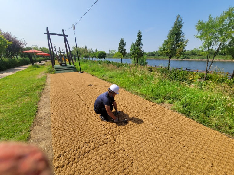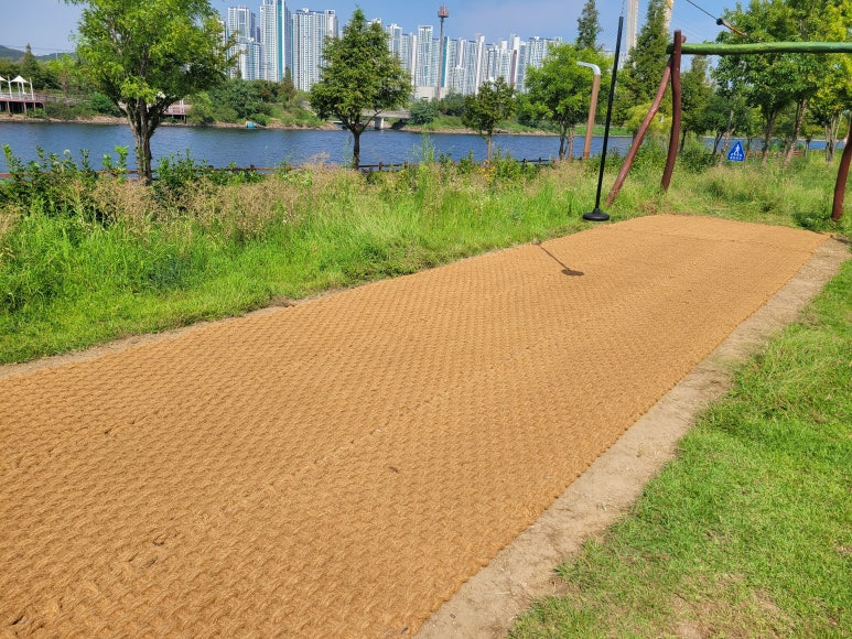 새롭게 제작된 야자매트를 사이즈에 맞게 설치합니다.