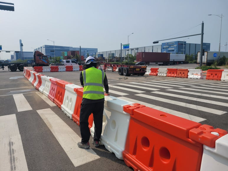 PE방호벽 설치로 차량 통행을 제한할 수 있습니다.