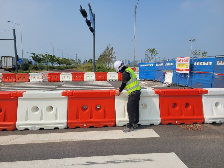 PE방호벽(폴리에틸렌 방호벽)은 건설, 도로 현장에서 안전을 보장하고 사고를 예방하기 위해 널리 사용되는 필수적인 장비입니다. 가볍고 내구성이 뛰어나며 설치가 간편해 다양한 환경에서 활용할 수 있는 것이 특징입니다. 설치 시 주의사항으로는 사용하는 PE방호벽이 국내외 안전 규격을 충족하는지 확인 후 작업자와 동선과 차량 및 장비의 이동 경로를 고려하여 설치해야 합니다. 필요 시 경고등 반사판 등 추가적인 안전 장치를 부착해 시인성을 높일 수 있습니다.