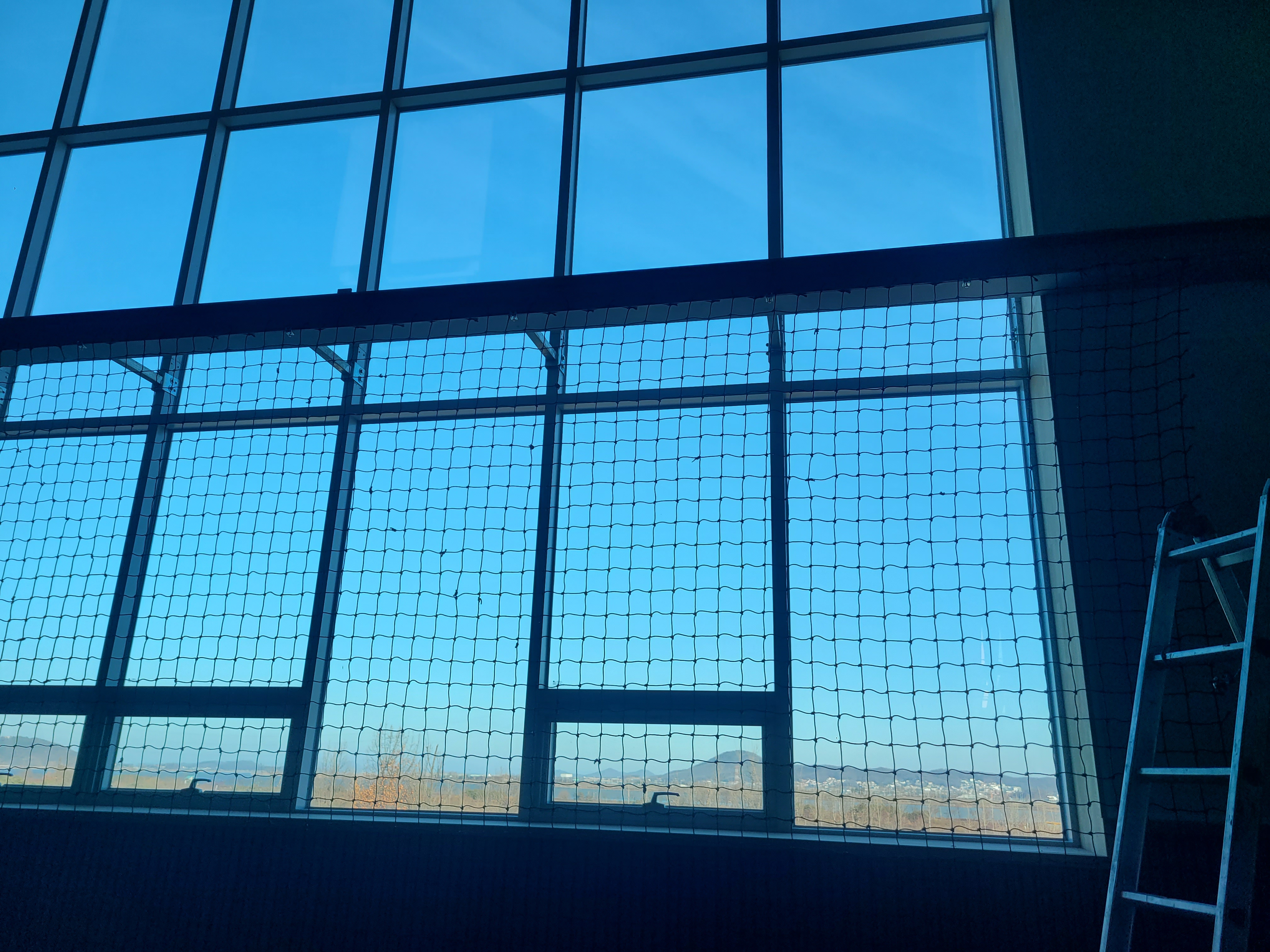 작업 진행 방법: 현장을 실측해서 유리창의 면적 및 천장 높이를 확인합니다. 주로 하는 운동 종목에 맞춰 그물망 밀도를 결정하고 예산에 맞춰 고정식, 수동식등 설치방법을 정한 후 고정식으로 체육시설 그물망을 설치 합니다.