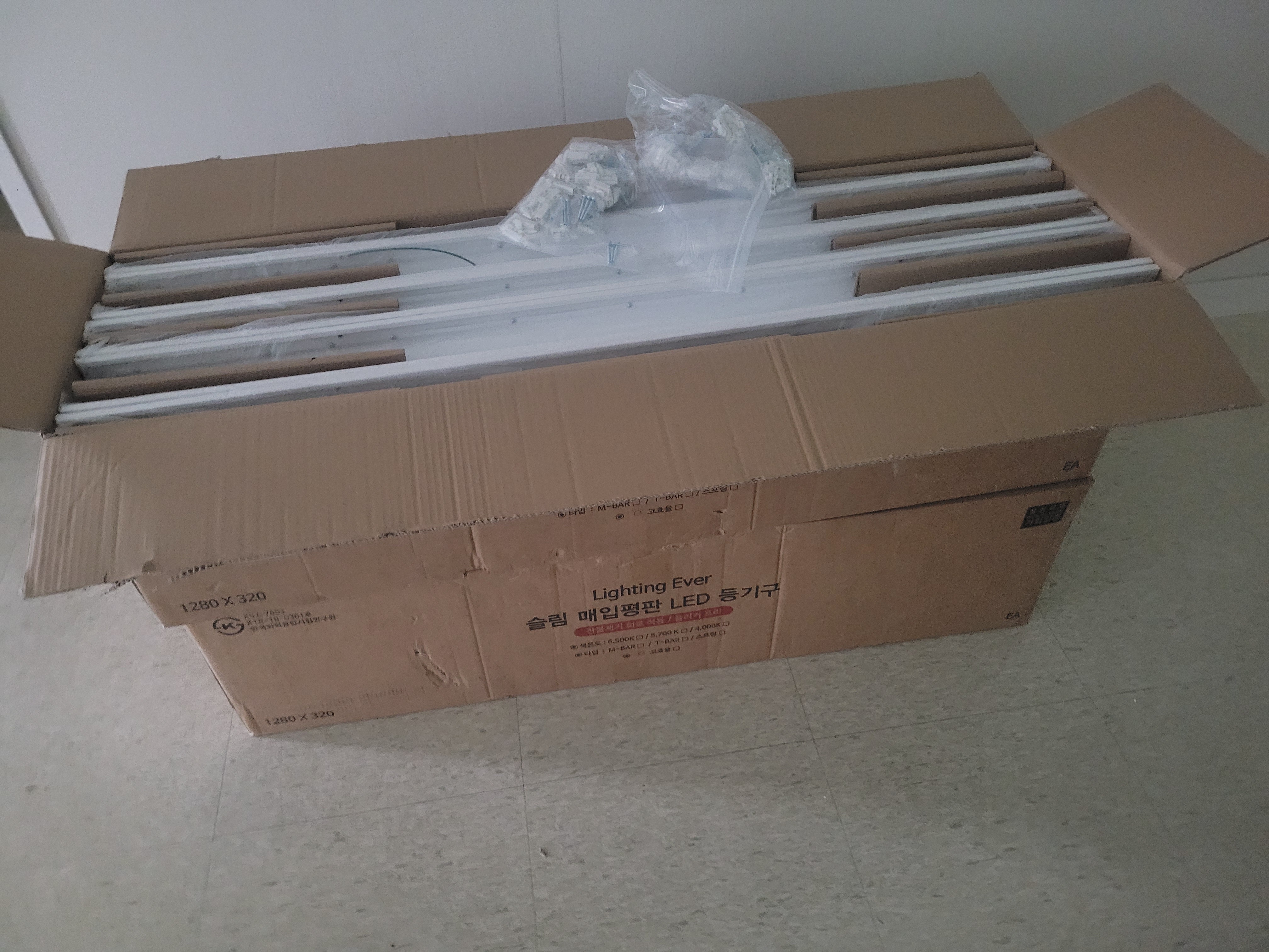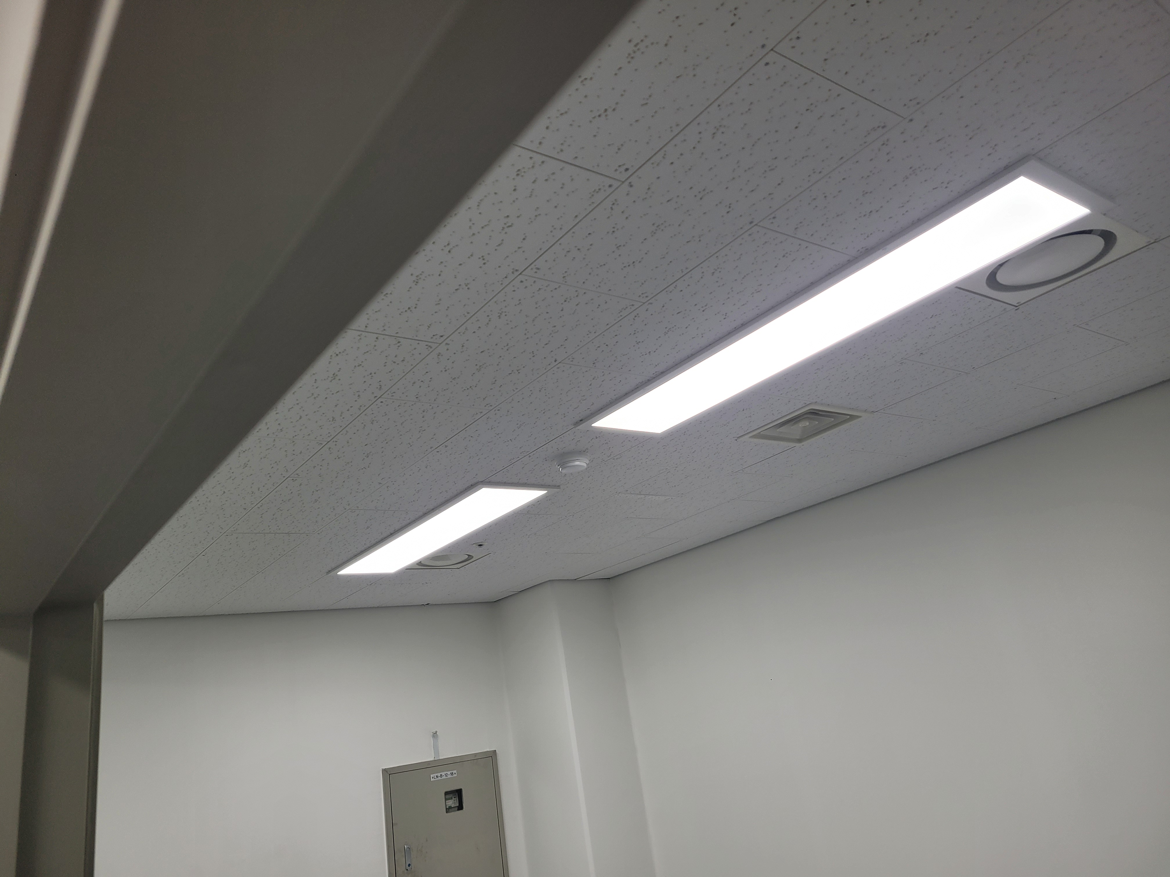 제품 설명: 기존 형광등에서 LED조명으로 바꿔야하는 이유는 눈의 피로도 감소 합니다. 균일한 빛 확산. 에너지 절감. 깔끔한 인테리어 등 LED조명은 기존 형광등에 비해 많은 장점을 가지고 있습니다. 보통 사무실 천장 상태에 따라 매입형, 노출형 등 다양한 조명이 있습니다. 이번 현장에는 텍스형 천장이라 LED평판등으로 설치를 진행했습니다.