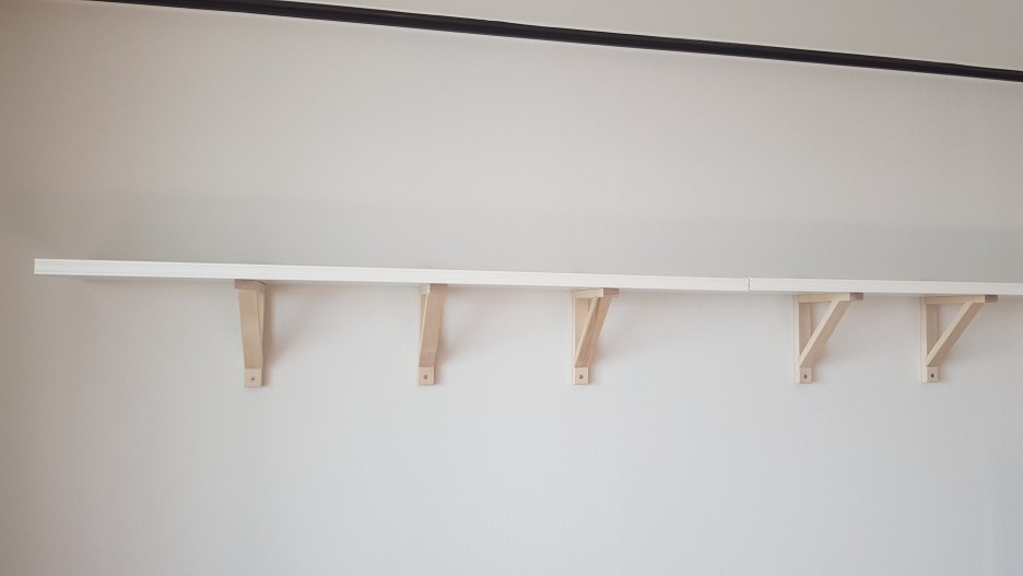 사이즈가 길어서 벽선반 브래킷(에크뷔 발테르) 3개를 사용해서 지지해 줍니다.
