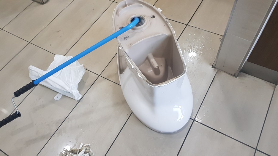 2. 관통기를 통해서도 잘 내려가지 않는다면 변기를 뜯어서 반대 구멍을 통해서 다시 관통 작업