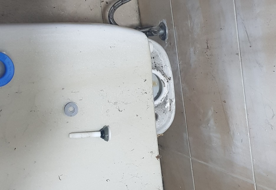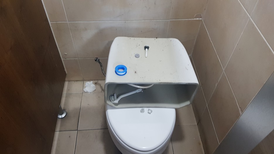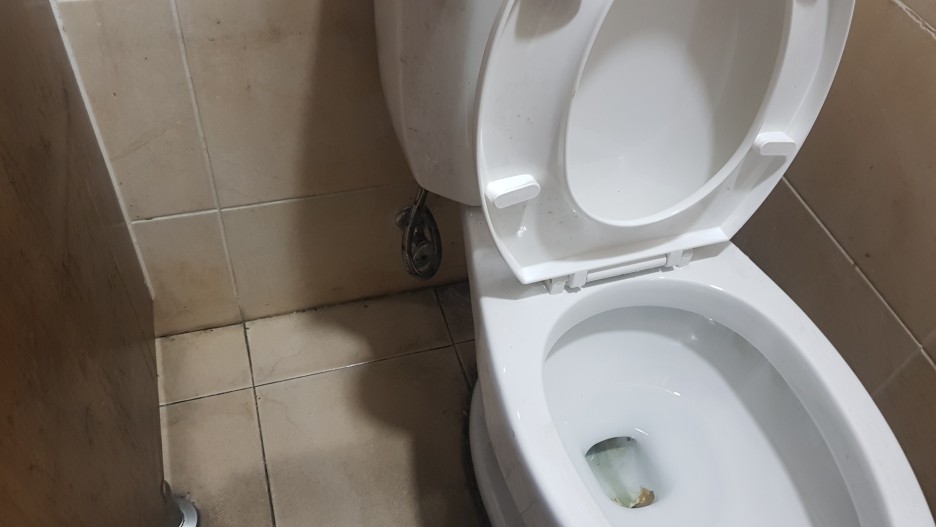 변기 누수로 인해 변기를 뜯어내서 해당 부속을 확인합니다.