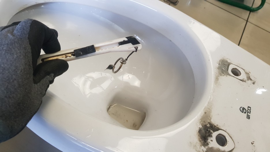 처음 변기 관통 작업 시 물티슈가 나왔습니다. 물티슈 이후에 다시 작업을 해보니 칼이 나옵니다.