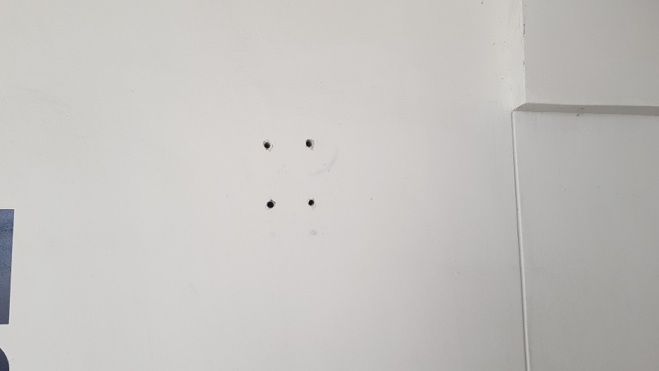 위치가 선정이 되면 벽부형 파이프를 고정 시킬 수 있도록 타공 작업을 해줍니다.