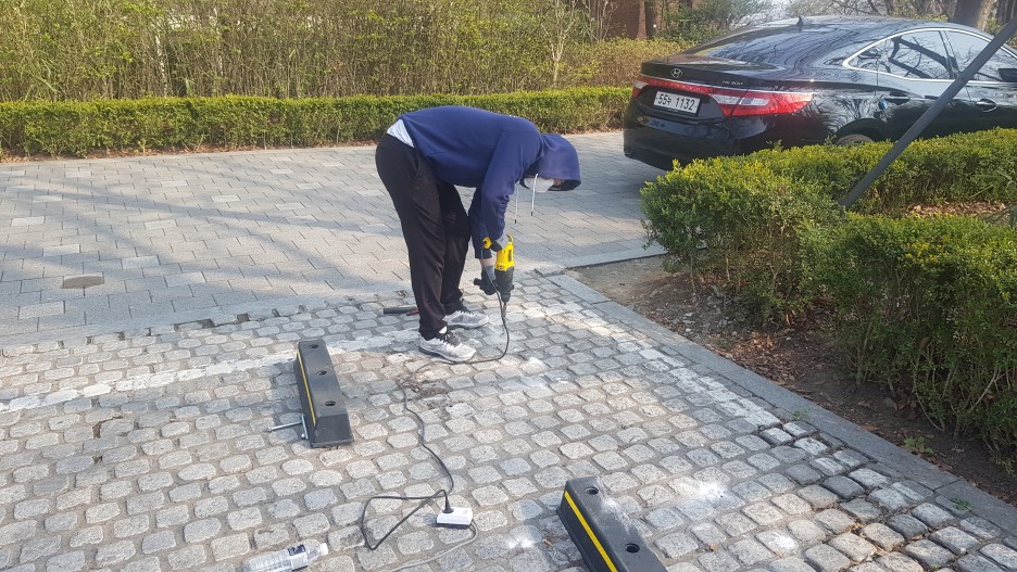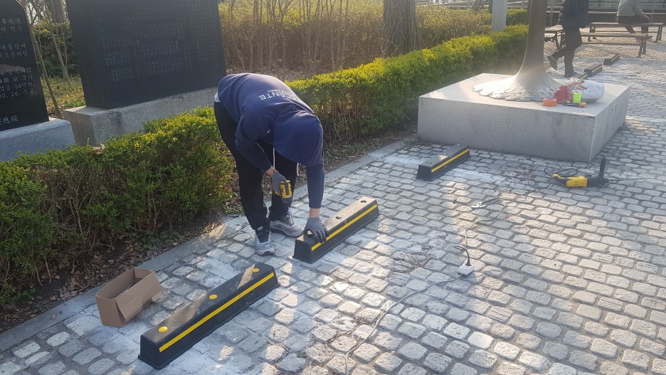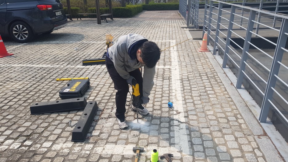 칼브럭을 고정시키고 주차스토퍼(주차 블럭)을 고정시켜 줍니다.