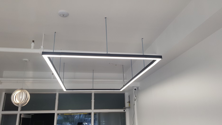 네모 모양의 LED라인시스템 조명을 설치 하였습니다.